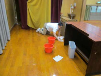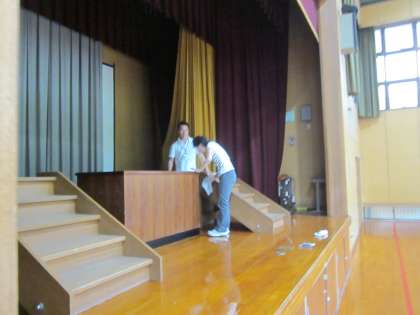PTAバレーボールの時に『体育館雨漏り情報』をいただきありがとうございます。本日応急措置をしています。週明けには原因究明にかかります。