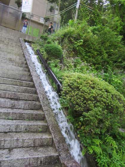 体育館屋上の排水口にふさがった落ち葉を掃除すると…大量の水が流れ出しました。
