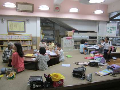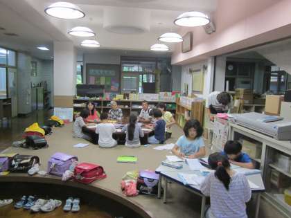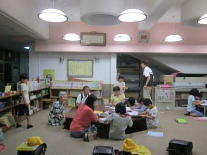 課題が済んだ児童が,室内遊びや塗り絵を始めました。