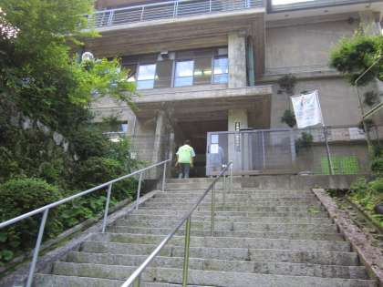 石段の草引きや清掃を,定期的に管理用務員さんがします。
