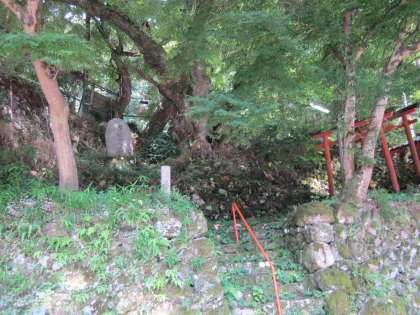 創祀・由緒等は不明で,敷地内に「鬼一法眼古跡」の石碑が残っています。鬼一法眼とは『義経記』に登場する伝説上の人物。京都一条堀川に住んでいた陰陽師です。