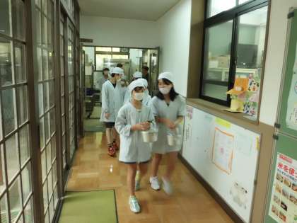 3年生が無事帰ってきました。早速給食です。