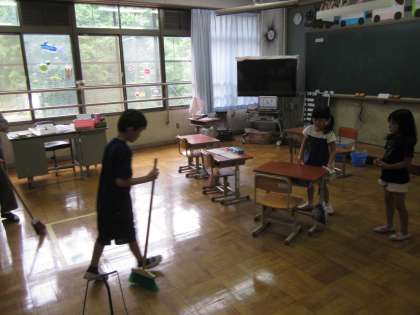 首筋に汗をかきながらのお掃除です。偉いですね。