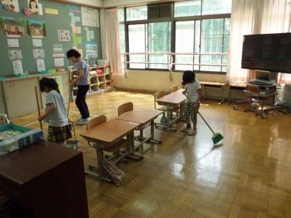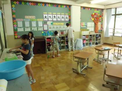 掃除時間です。みんな一生懸命学校を美しくしています。細かいところまで丁寧に頑張っています!!