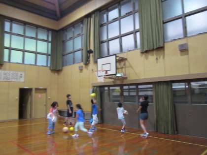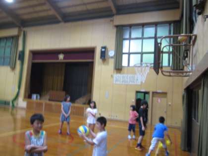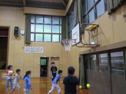 ボールが上で止まってしまいました。最後は竹の棒で取りました。