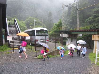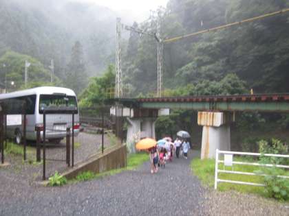 大雨の中の登校