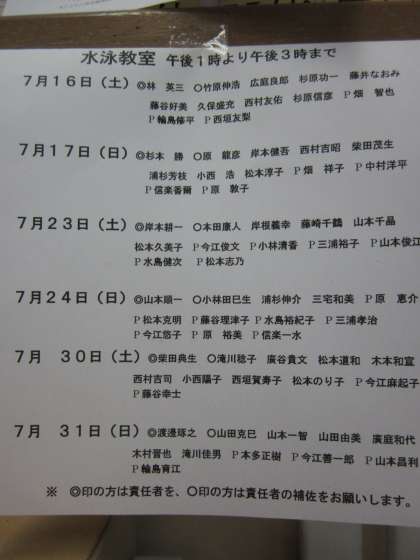 土日水泳教室の予定