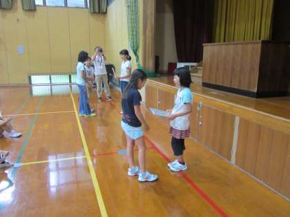 転校するお友達から,お話をしてもらいました。みんなもメッセージカードを渡しました。