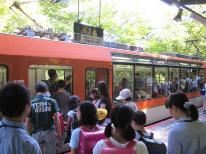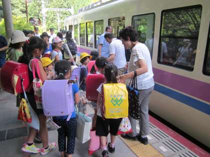 二ノ瀬方面行がほぼ満員だったので,児童のことをよろしく…と運転士さんにお願いしました。