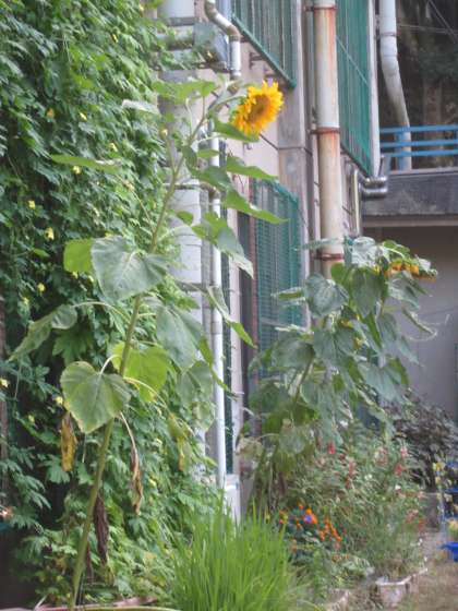 久しぶりに見るヒマワリが,とても大きくなっていました。
