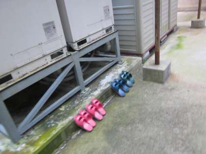 明日からの『前期後半』に向けて,教職員がトイレ掃除をしました。スリッパも洗い,乾燥させていました。
