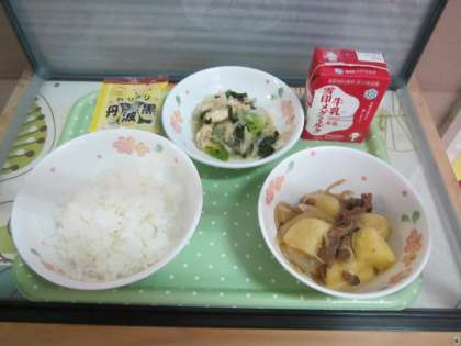 いい匂いがしてきます。久しぶりの給食です。
