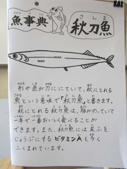 今日のメニューに“秋刀魚(さんま)”があります。