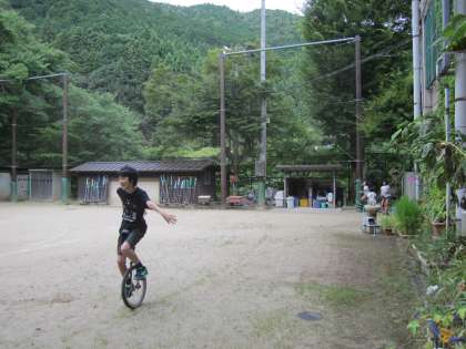 朝遊びはボールが多いのですが,今朝は一輪車が多かったです。