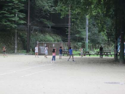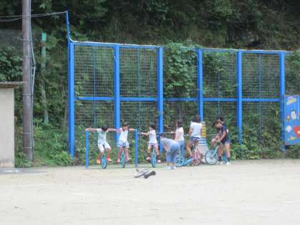 体育館で遊ぼうとしましたが,雨が降っていないので外遊びです。