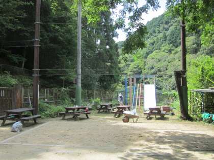 除草作業・落ち葉拾いをしています。作業中も汗が出ます。