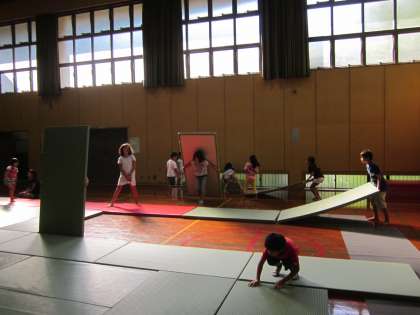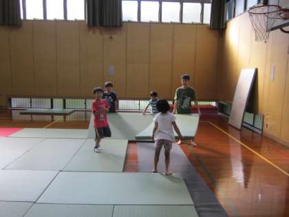 放課後,体育館に来た児童から畳を出します。