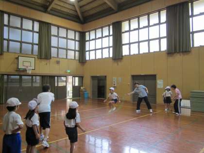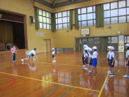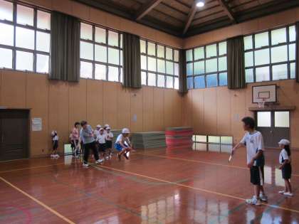 うまく跳べた時に,ハイタッチしている鞍馬っ子がいました。嬉しいですね。
