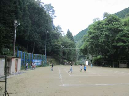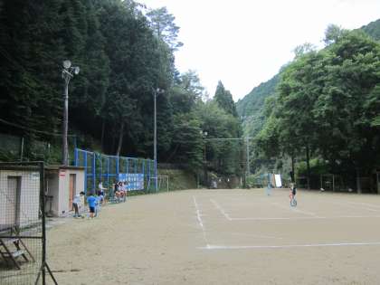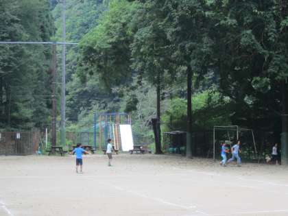 お部屋で過ごしている友第に,運動場から