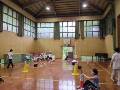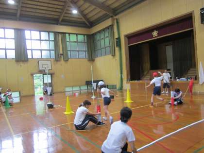 雨で運動場は使えません。今日は体育館での練習です。