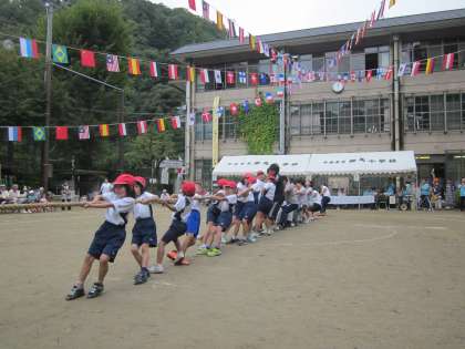 保護者と児童が協力して,紅白に分かれて戦いました。