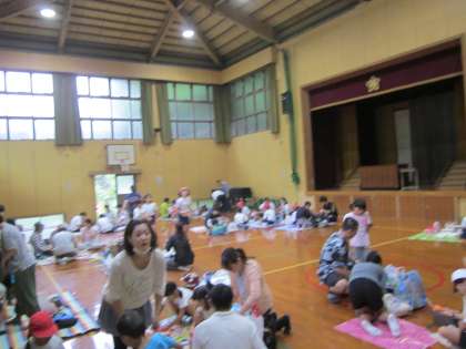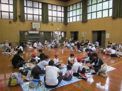 お昼は体育館でお弁当