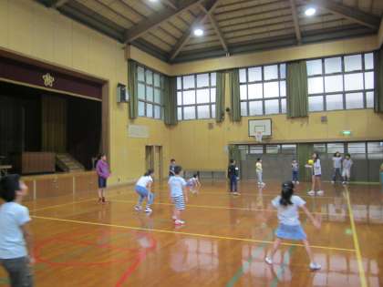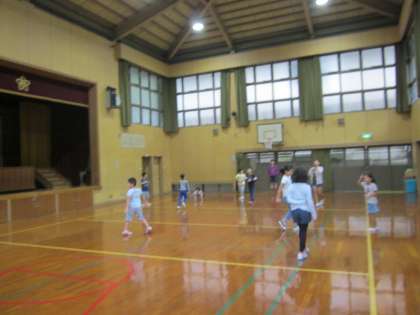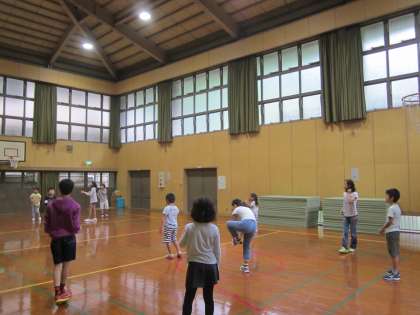 運動場の状態が少し良くないので,体育館で遊んでいます。