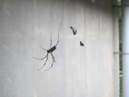 スズメバチの巣がないか見ていると…クモの巣です。