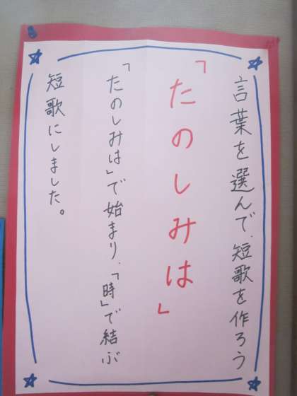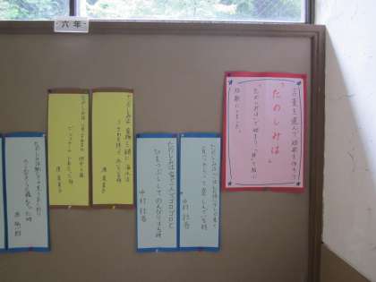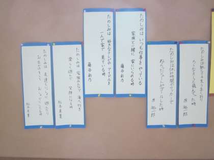 6年生の掲示板,「楽しみは…」で始まる言葉でした。