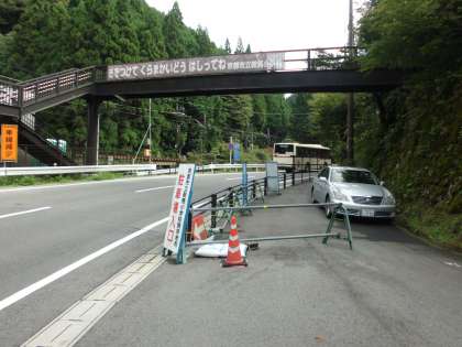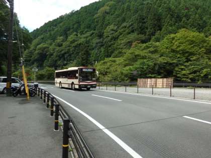 今日から花背山の家長期宿泊学習です。9時ごろ鞍馬小学校の前をバスが通過しました。