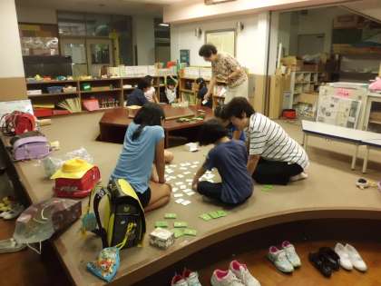 今日の部活動は百人一首です。みんな一生懸命札を見て1枚でも多くとろうと頑張っています。