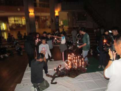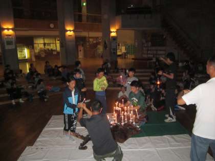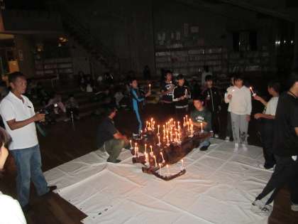 厳粛な雰囲気の中,ろうそくの明かりがともります。
