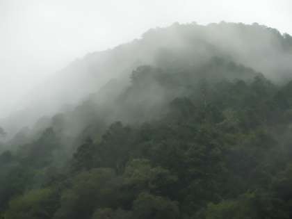 ふと山の方を見ると,雲がかかっていて,山水画のようでした。