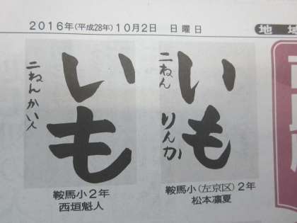 10月2日(日)京都新聞に,本校2年生の書写作品が掲載されていました。喜ばしいことですね。梁瀬先生,いつもご指導ありがとうございます。