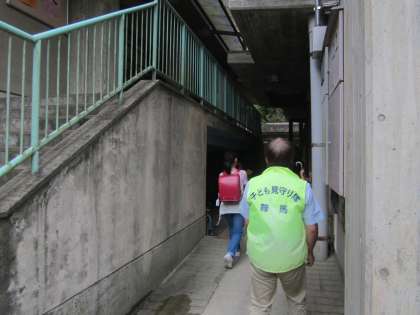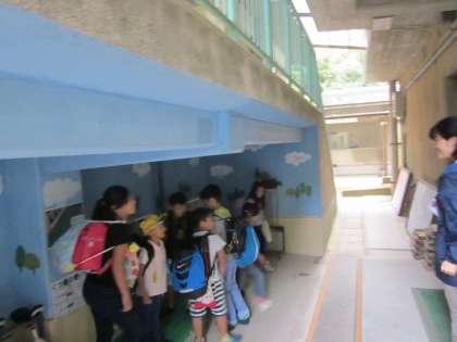 教育実習生と養護教諭が,鞍馬っ子を迎えています。