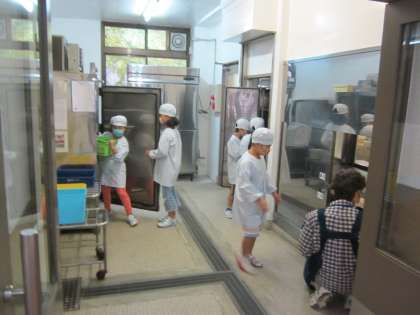 今日も,給食当番をしっかりする鞍馬っ子です。
