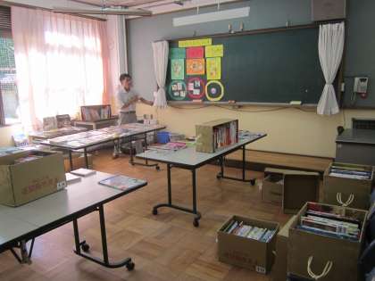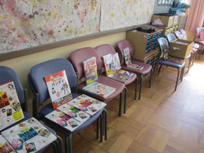 4時間目終わり頃から,本日5時間目実施の『選書会』の準備を,業者の方がされています。(重い本を何冊も運んでくださいました。)