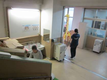教育実習中の大学生も,一緒にお掃除します。