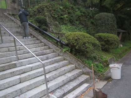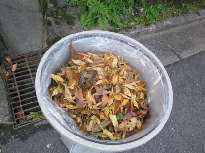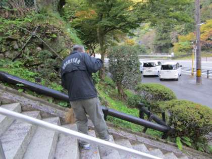 石段付近にたくさんの落ち葉がありました。