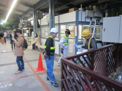 貴船口駅で,作業員の方とお話をしました。