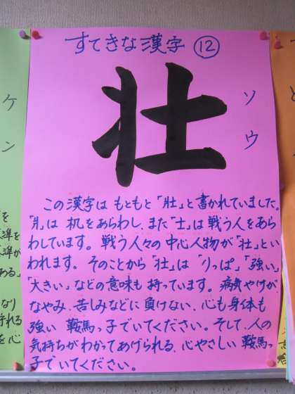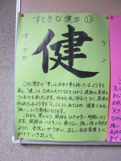 体育館入口には,『すてきな漢字』が掲示してあります。