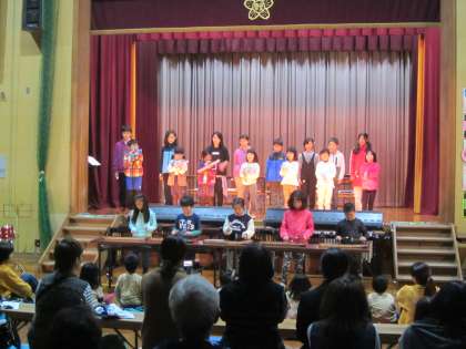 全校合奏『鞍馬音楽会』です。学年ごとの演奏もありました。