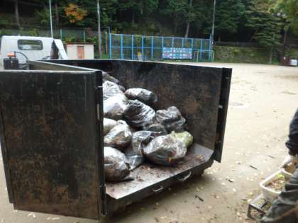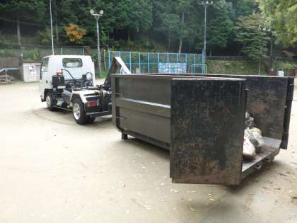 たくさんの袋を積み込みやすいように,荷台が降りてくるトラックでした。