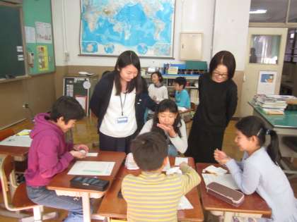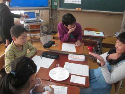 自分の舌で,苦い味・甘い味・塩辛い味・酸っぱい味を体験します。