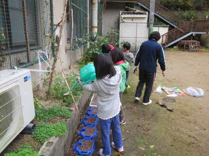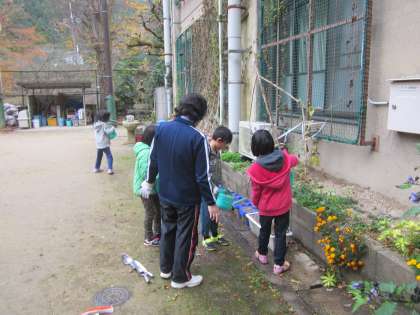 1年生がお花を植えていました。