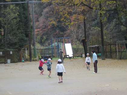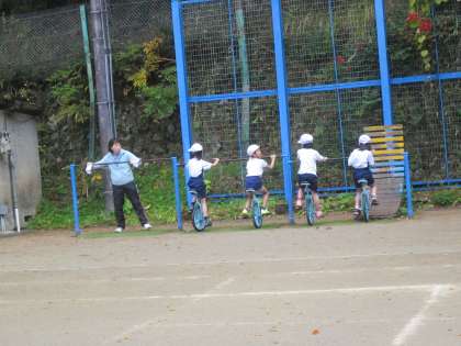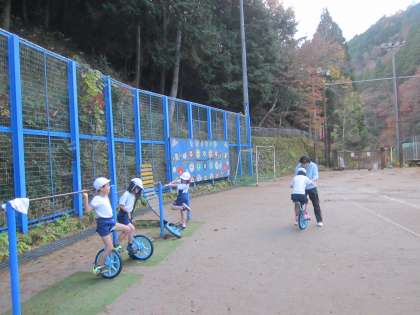 寒い中でも元気な1年生,しっかり体を動かしています。