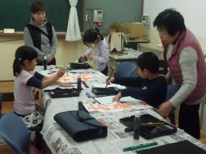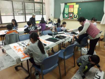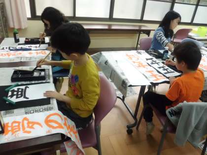 いつもと違う大きさの紙に大きな文字を書くので,ちょっと難しそうにしていましたが,だんだん書き慣れてきて,字形も整ってきました。