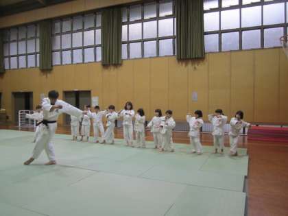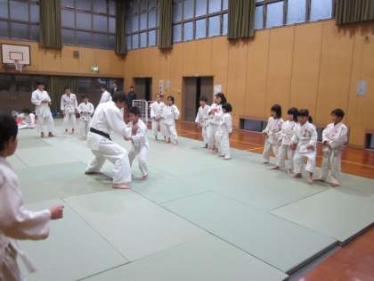 出足払いを稽古しています。3年生が上手に受け身をしています。