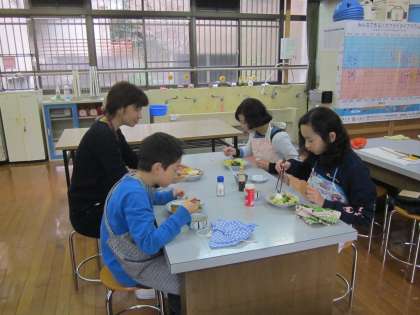 5年生の調理実習は“野菜サラダ”です。