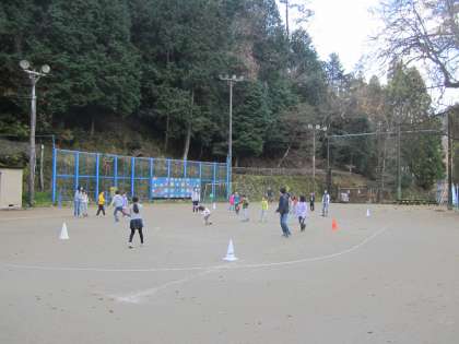 運動場でドッジボールです。新鮮な感じがします。